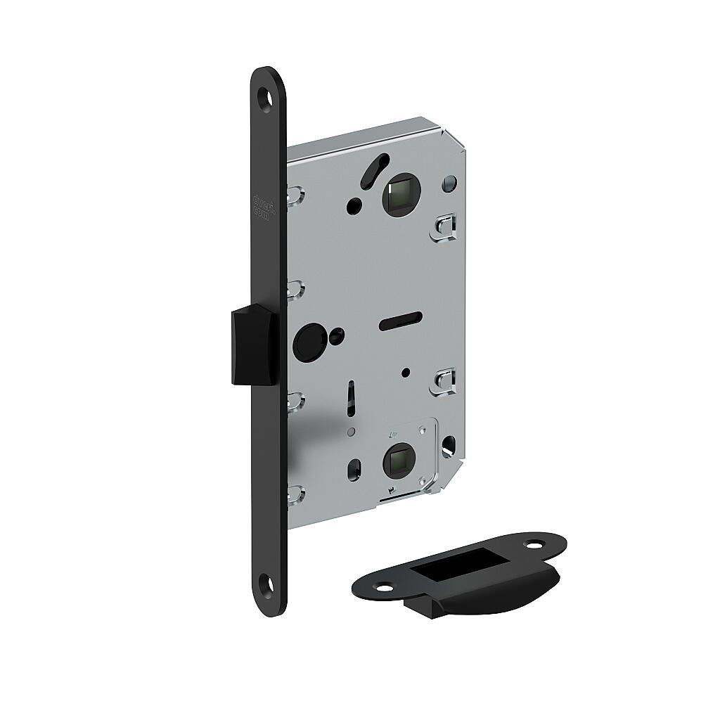 Описание: Врезная универсальная защелка из стали с язычком из ударопрочного пластика предназначена для установки на межкомнатные двери с возможностью запирания на фиксатор.