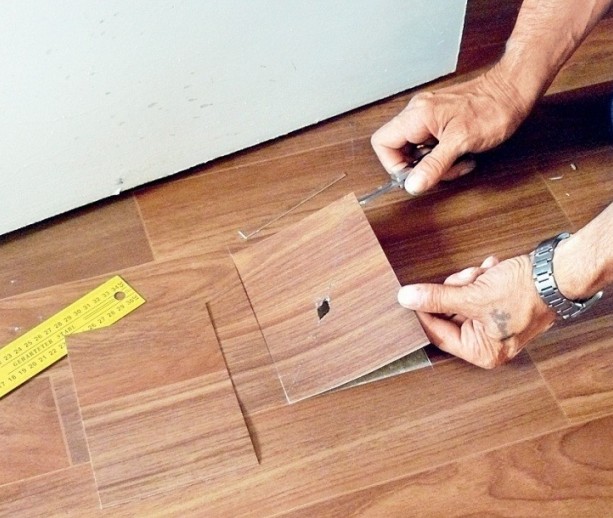 Как заделать дырку в линолеуме с помощью заплатки?